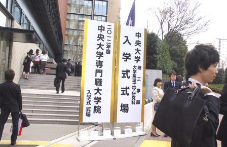 理工学部全体の「理工学部入学式」・「理工学研究科入学式」が5号館アリーナで開催された後、下記の通り各学科別の入学式が会場を移動して執り行われました。