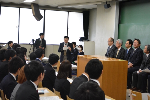電気電子情報通信工学科入学式で挨拶される白井宏教授