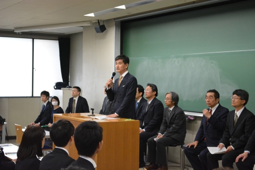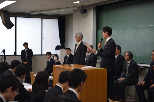 電気電子情報通信工学科入学式で挨拶される竹内健教授