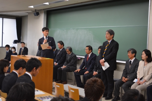 皆さんが、互いに助け合って、あるいは、先生方の指導を受けながら、技術者として必要な知識や応用力、さらには、社会人として必要なコミュニケーション能力を身につけ、有意義な学生生活を送られた上で、意気揚々として社会に巣立って行かれることを心から願って、同窓会長の祝辞とさせていただきます。